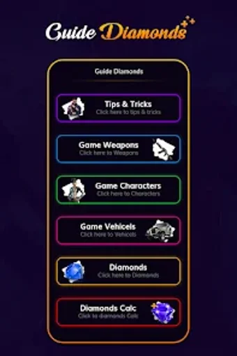 แอปพลิเคชันนี้ให้ข้อมูลแนะนำสำหรับการสันทนาการ มีข้อมูลเกี่ยวกับ Elite Pass Bundles, Emotes, และ Game Gun Skins รวมถึงอื่นๆ อย่างไรก็ตาม ควรทราบว่านี่ไม่ใช่แอปพลิเคชันอย่างเป็นทางการและไม่เกี่ยวข้องกับผู้พัฒนาเกม แอปพลิเคชันนี้ไม่ให้เพชรฟรีและไม่ขอข้อมูลส่วนบุคคลจากผู้ใช้